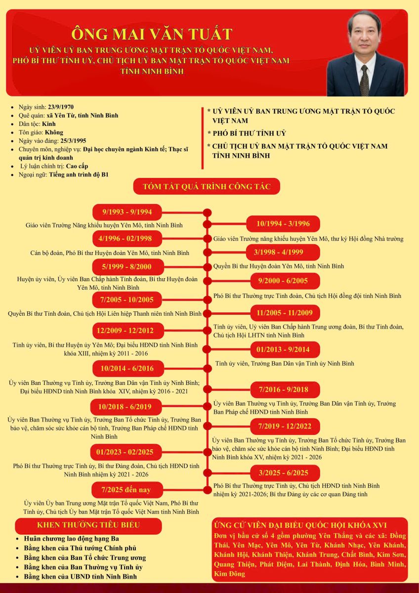 Trang Thông tin điện tử cơ quan Uỷ ban MTTQ Việt Nam tỉnh Ninh Bình trân trọng giới thiệu tiểu sử ứng cử viên đại biểu Quốc hội khóa XVI Mai Văn Tuất, thuộc đơn vị bầu cử số 4 tỉnh Ninh Bình.