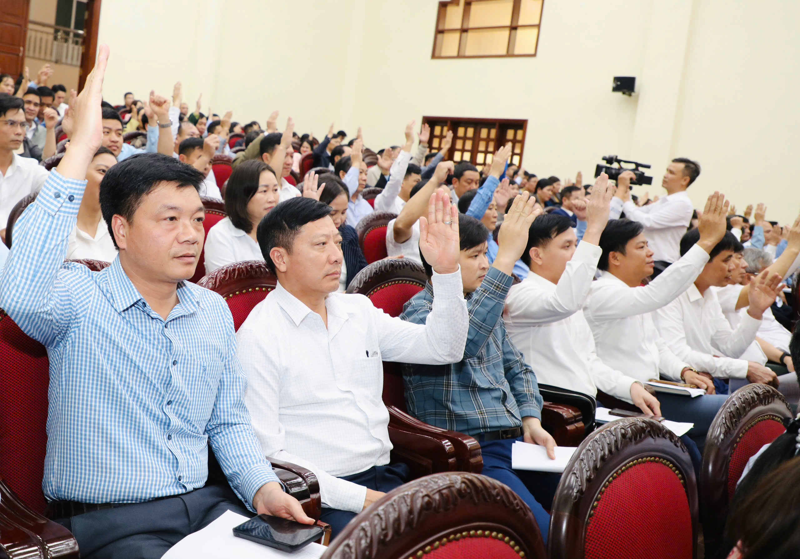 Biểu quyết thông qua cơ cấu, thành phần, số lượng người ứng cử đại biểu Quốc hội khóa XVI, đại biểu HĐND tỉnh nhiệm kỳ 2026-2031 tại Hội nghị hiệp thương lần thứ nhất do Ủy ban MTTQ Việt Nam tỉnh tổ chức. Ảnh: Đức Lam