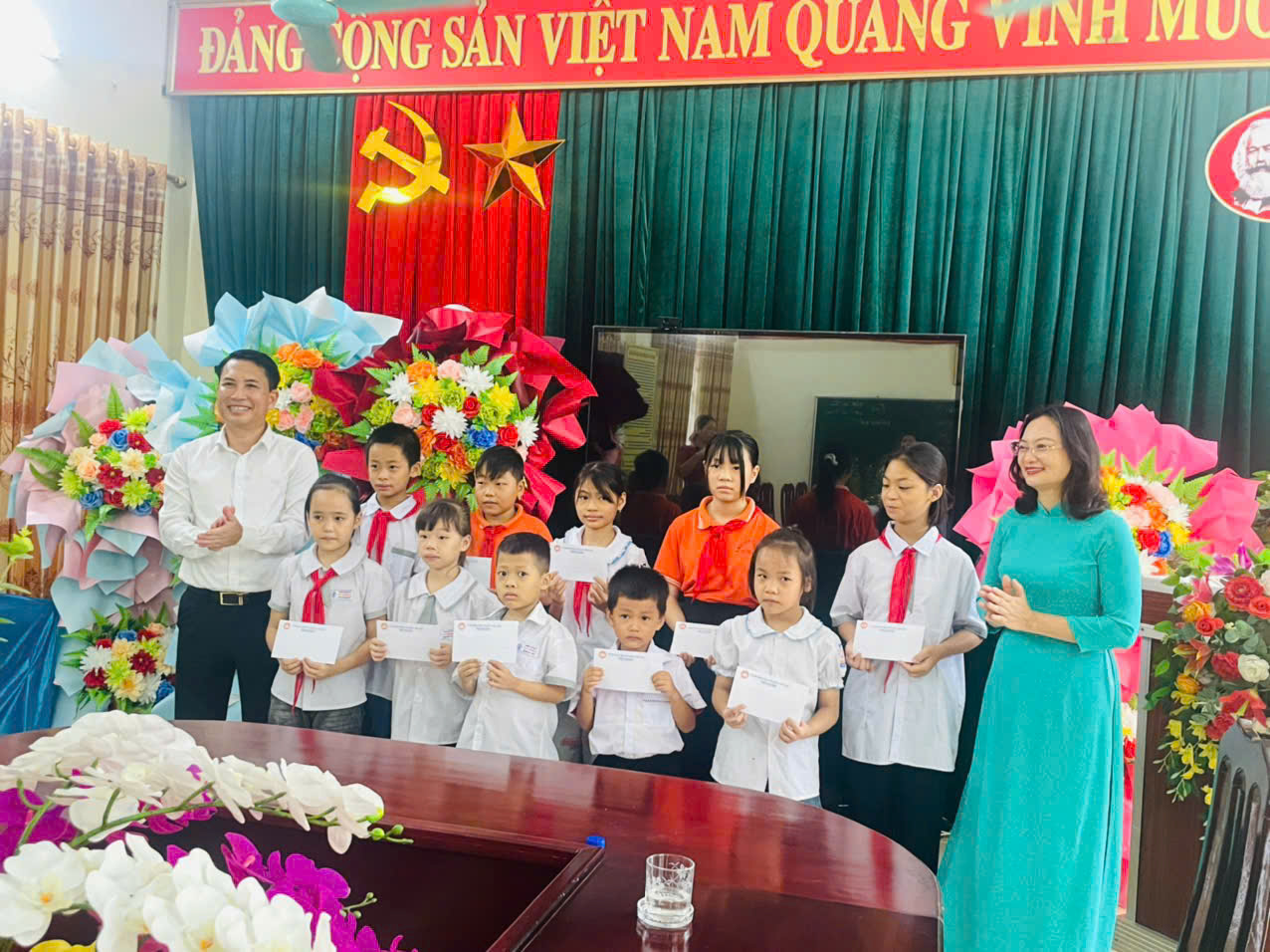 Đồng chí Trần Thị Ngân - Phó Chủ tịch Ủy ban MTTQ Việt Nam tỉnh thay mặt Ban Thường trực Ủy ban MTTQ Việt Nam tỉnh trao tặng 10 suất quà dành cho các em học sinh có hoàn cảnh khó khăn trên địa bàn xã Cúc Phương.