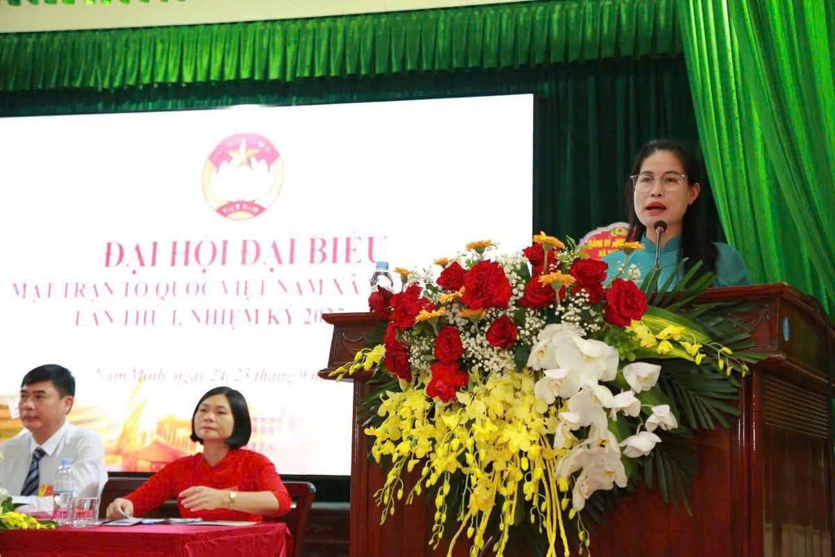 Phát biểu chỉ đạo đại hội, bà Trần Thị Thoa - Phó Chủ tịch Ủy ban MTTQ Việt Nam tỉnh, ông Hà Duy Tiên - Bí thư Đảng ủy, Chủ tịch HĐND xã đã biểu dương kết quả mà MTTQ Việt Nam xã Nam Minh đã đạt được trong nhiệm kỳ qua và đề nghị trong thời gian tới, MTTQ xã cần tăng cường phát huy sức mạnh khối đại đoàn kết toàn dân tộc, phát động mạnh mẽ các phong trào thi đua yêu nước, các cuộc vận động và tiếp tục nâng cao vai trò nòng cốt của mặt trận và các tổ chức chính trị - xã hội, đổi mới tổ chức, nội dung, phương thức hoạt động, gắn các phong trào, hoạt động với thực hiện những trụ cột chiến lược của đất nước trong kỷ nguyên mới. Cùng đó tập trung xây dựng đội ngũ cán bộ có bản lĩnh chính trị vững vàng, am hiểu dân vận; thực hiện tốt chức năng đại diện, bảo vệ quyền và lợi ích hợp pháp, chính đáng của Nhân dân, nâng cao chất lượng giám sát, phản biện xã hội, tập trung vào những vấn đề như: an sinh xã hội, cải cách hành chính…