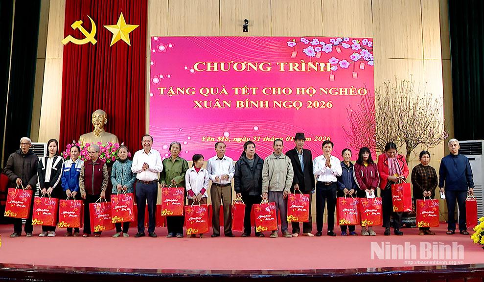Chiều 31/1, UBND xã Yên Mô tổ chức chương trình tặng quà cho hộ nghèo trên địa bàn xã nhân dịp Tết Nguyên đán Bính Ngọ 2026. Đồng chí Mai Văn Tuất, Phó Bí thư Tỉnh ủy, Chủ tịch Ủy ban MTTQ Việt Nam tỉnh; các doanh nghiệp, nhà hảo tâm trong tỉnh dự chương trình.