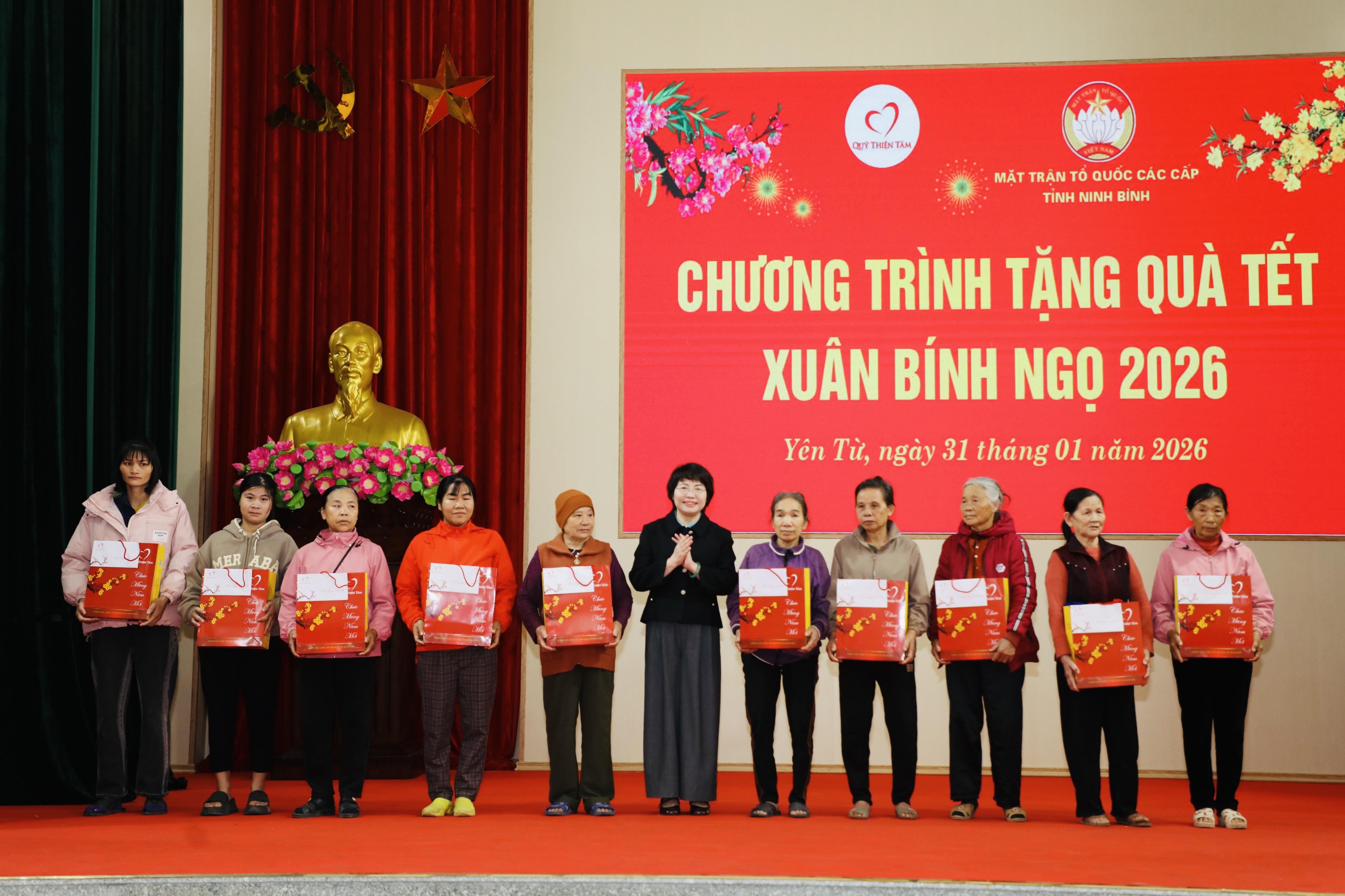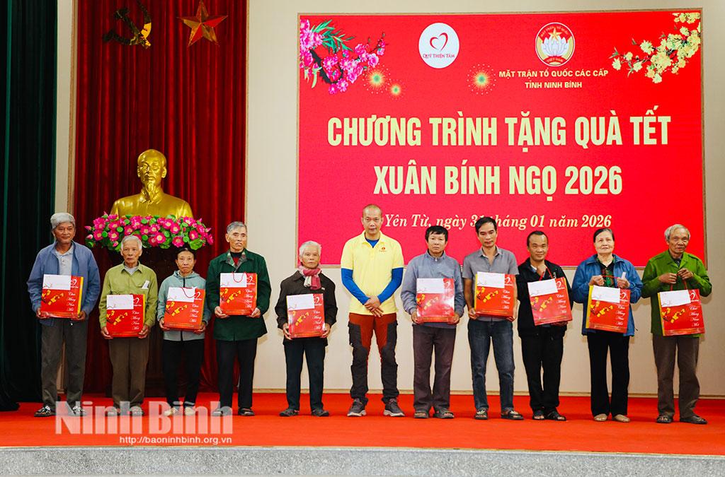 Tại chương trình, đồng chí Mai Văn Tuất, Phó Bí thư Tỉnh ủy, Chủ tịch Ủy ban MTTQ Việt Nam tỉnh và đại diện Quỹ Thiện Tâm đã trao quà Tết cho hộ nghèo, hộ cận nghèo, hộ có hoàn cảnh khó khăn của xã Yên Từ.