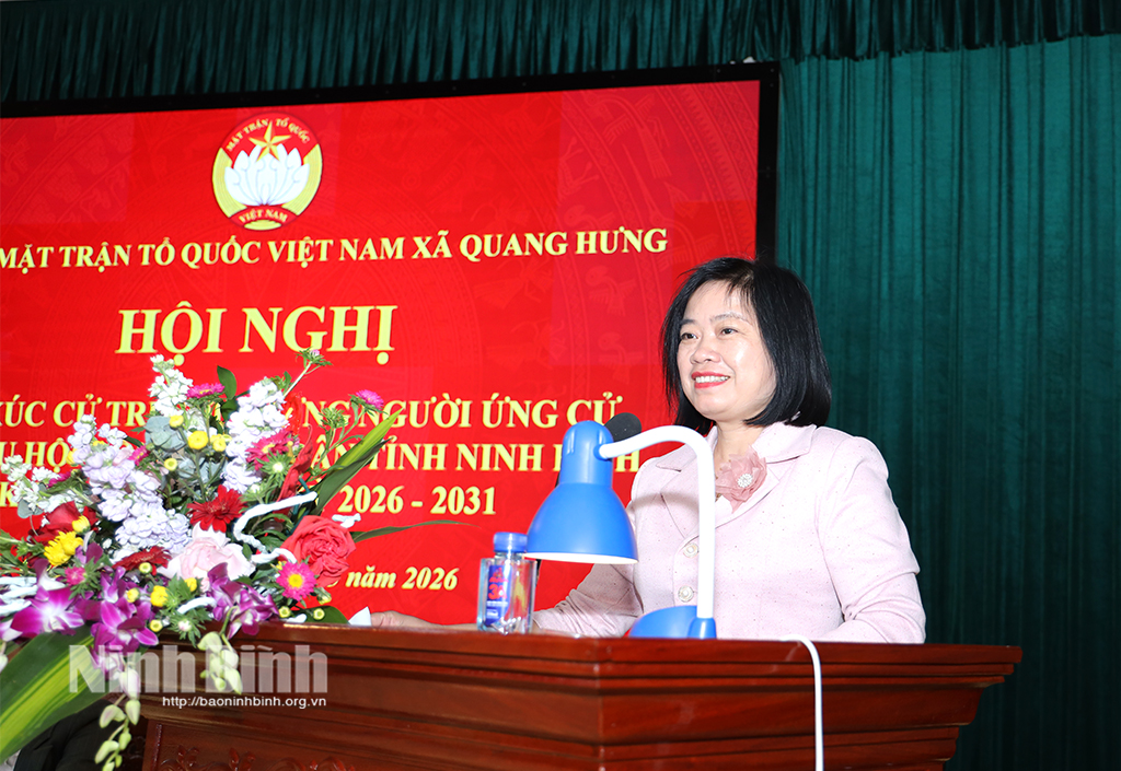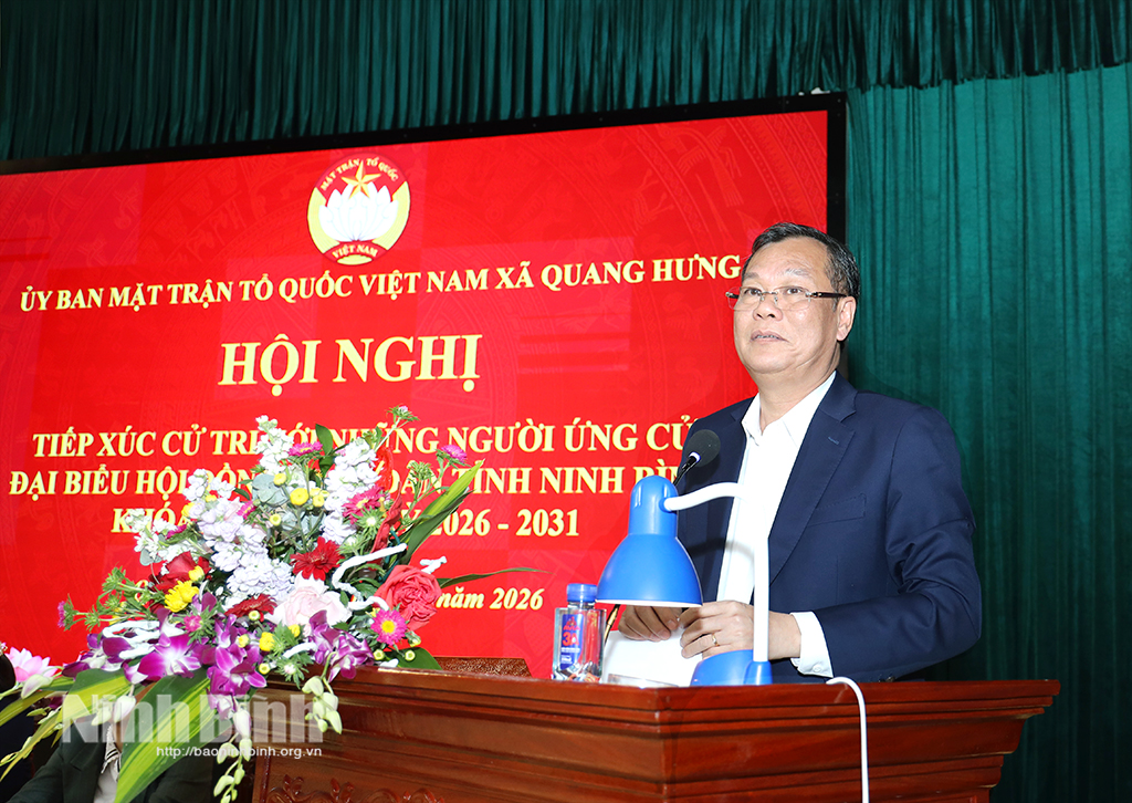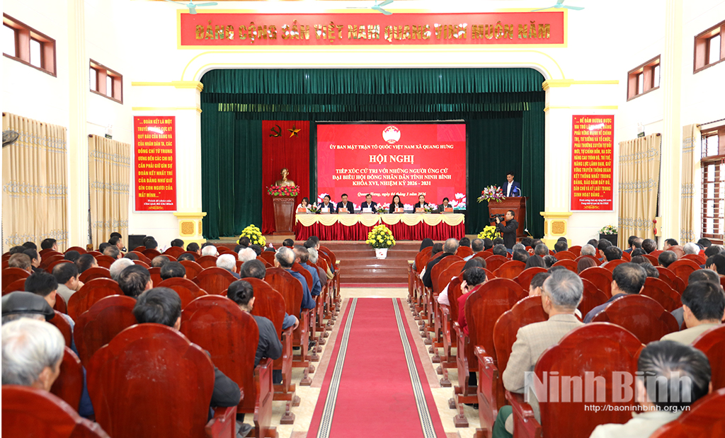 Chiều 4/3, tại xã Quang Hưng, Ban Thường trực Ủy ban MTTQ Việt Nam xã Quang Hưng phối hợp với UBND và Ủy ban bầu cử hai xã Quang Hưng, Trực Ninh tổ chức hội nghị tiếp xúc giữa cử tri với những người ứng cử đại biểu HĐND tỉnh khóa XVI, nhiệm kỳ 2026-2031 tại đơn vị bầu cử số 19. Đồng chí Phó Bí thư Tỉnh ủy, Chủ tịch HĐND tỉnh Lê Quốc Chỉnh và các ứng cử viên đại biểu HĐND tỉnh khóa XVI, nhiệm kỳ 2026-2031 dự hội nghị.