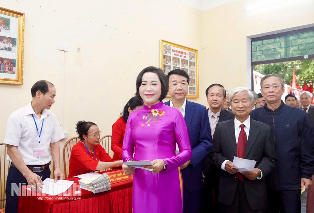 * Đồng chí Nguyễn Thị Thanh, Ủy viên Trung ương Đảng, Phó Chủ tịch Quốc hội, Phó Chủ tịch Thường trực Hội đồng Bầu cử quốc gia và đồng chí Nguyễn Thanh Bình, Phó Bí thư Tỉnh ủy, Chủ tịch UBND tỉnh, Phó Trưởng ban Chỉ đạo cuộc bầu cử tỉnh dự lễ khai mạc và bỏ phiếu tại Khu vực bỏ phiếu số 27, phường Hoa Lư.
