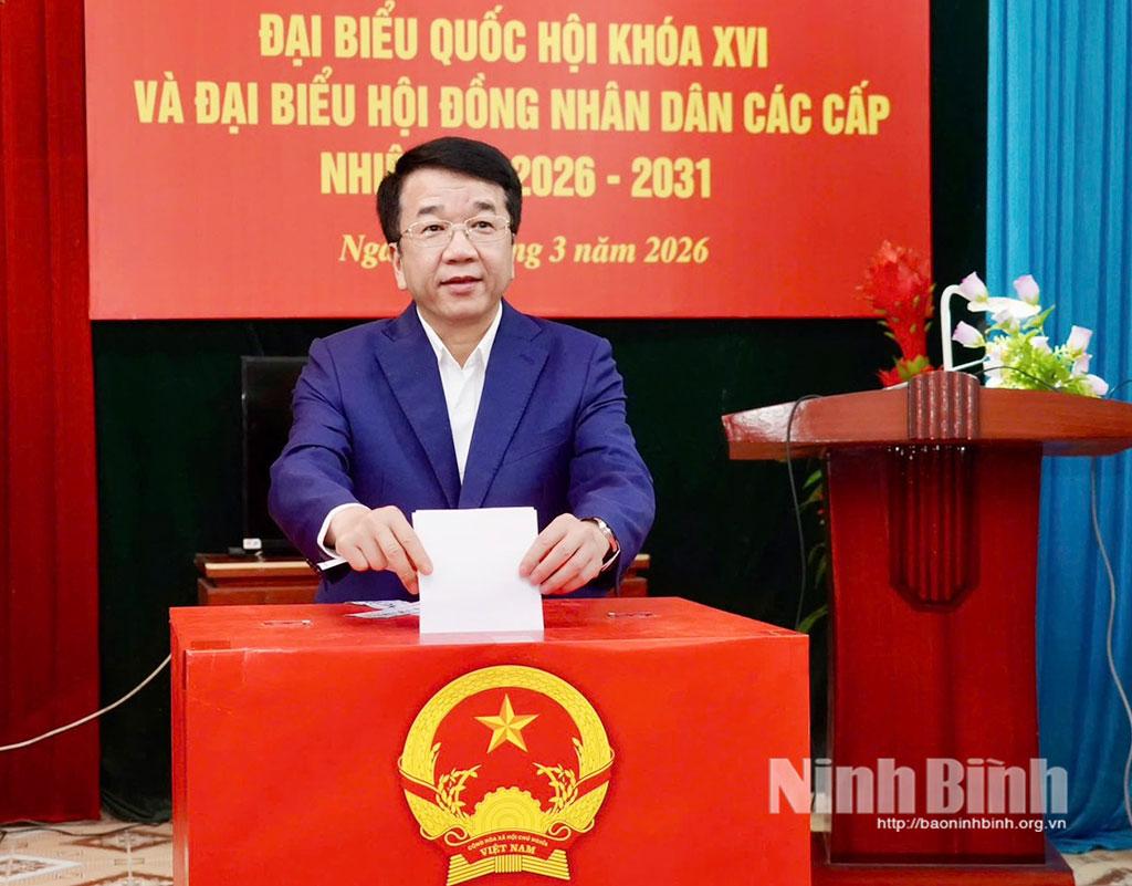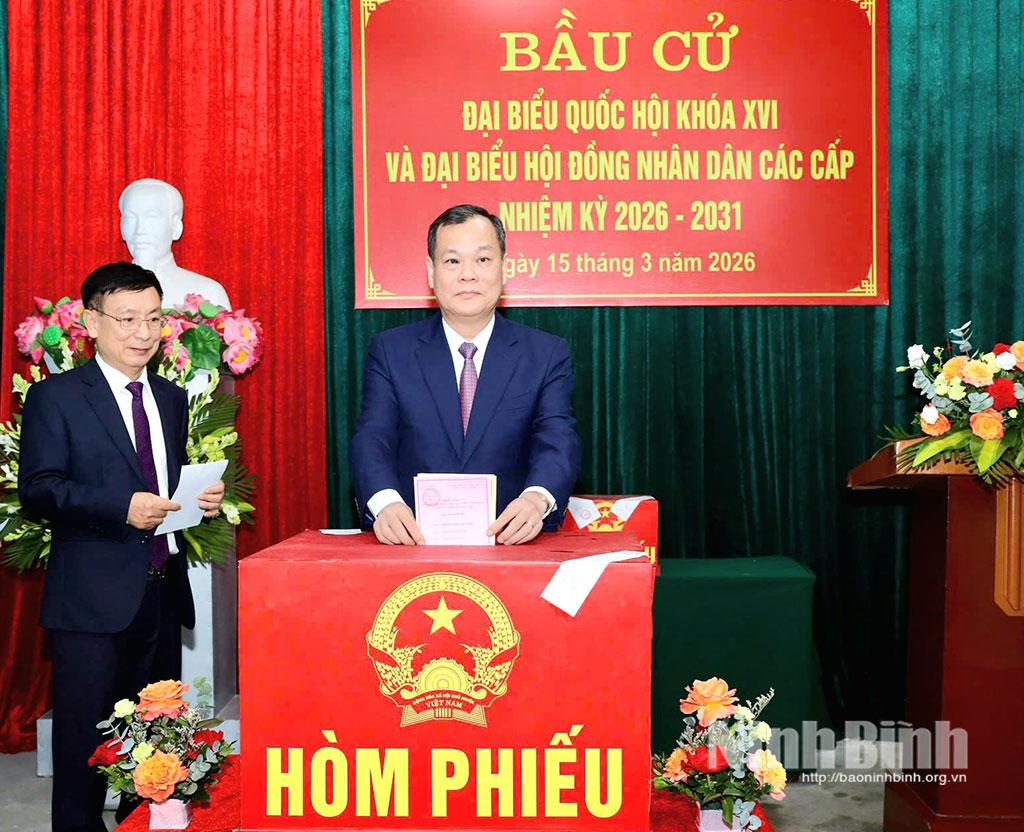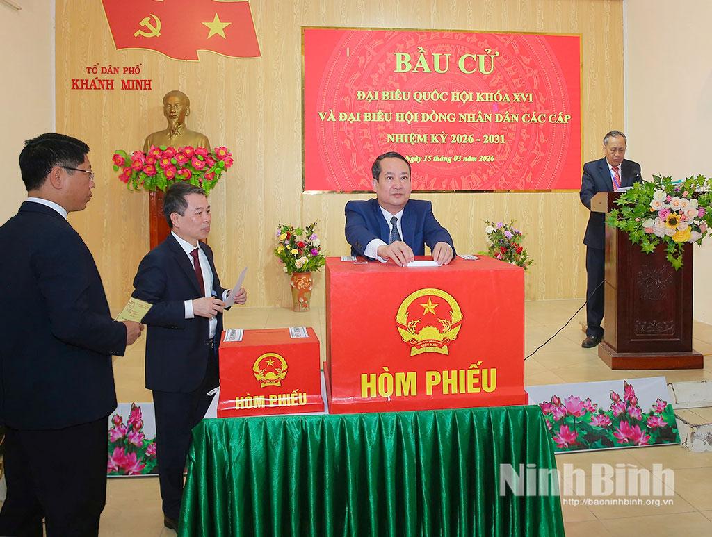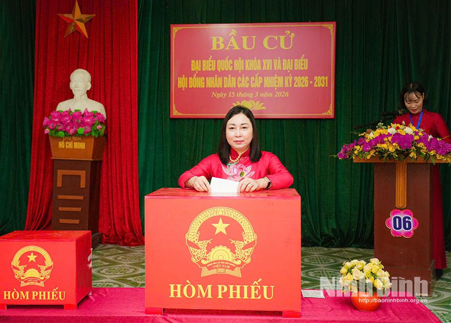 Sáng nay (15/3/2026), đúng 6h45, tại 2.536 khu vực bỏ phiếu trên địa bàn tỉnh đã đồng loạt tổ chức lễ khai mạc bầu cử đại biểu Quốc hội khóa XVI và đại biểu HĐND các cấp, nhiệm kỳ 2026 -2031 trong không khí trang trọng, phấn khởi. Đồng chí Nguyễn Thị Thanh, Ủy viên Trung ương Đảng, Phó Chủ tịch Quốc hội, Phó Chủ tịch Thường trực Hội đồng Bầu cử quốc gia cùng các đồng chí Thường trực Tỉnh ủy, lãnh đạo HĐND, UBND, Ủy ban MTTQ Việt Nam tỉnh Ninh Bình đã dự lễ khai mạc tại các khu vực bỏ phiếu và thực hiện quyền công dân, tham gia bỏ phiếu tại nơi cư trú và nơi công tác, mở đầu cho ngày hội lớn của toàn dân.