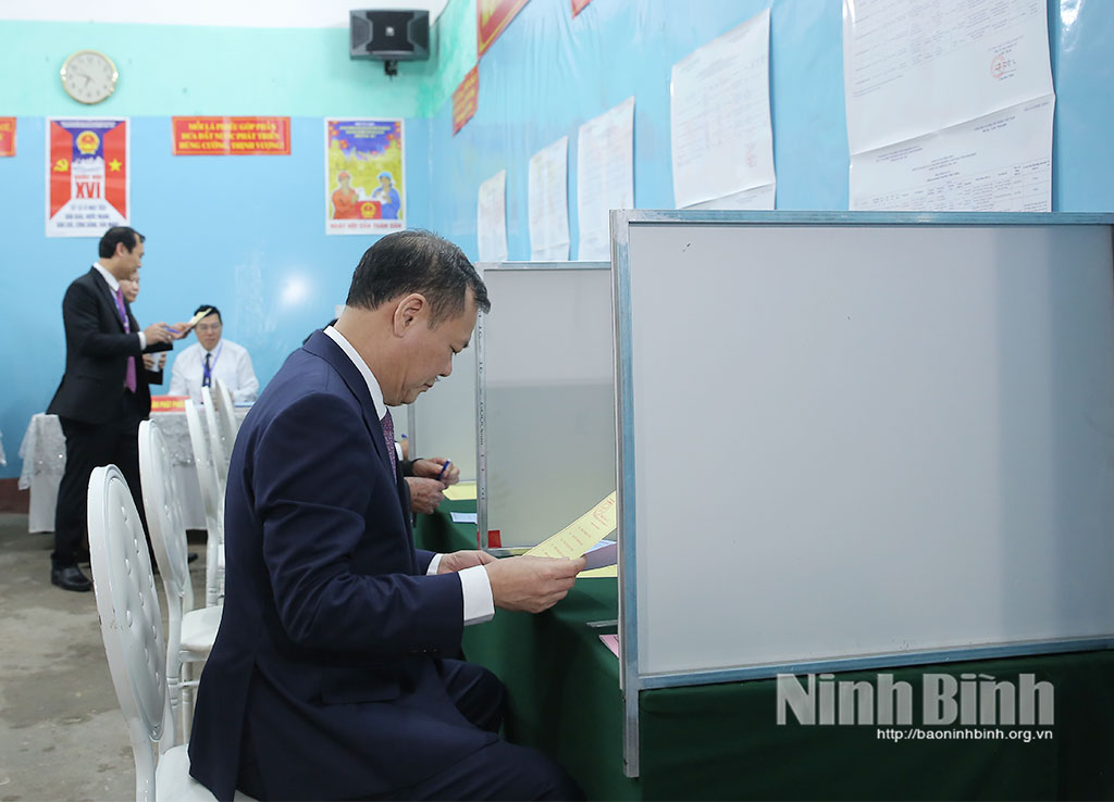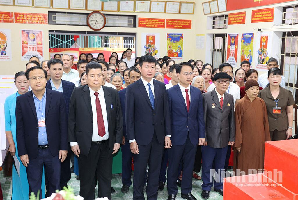 * Đồng chí Trần Huy Tuấn, Ủy viên Trung ương Đảng, Bí thư Tỉnh ủy, Trưởng Ban Chỉ đạo cuộc bầu cử tỉnh dự lễ khai mạc và bỏ phiếu tại Khu vực bỏ phiếu số 31, phường Hoa Lư.