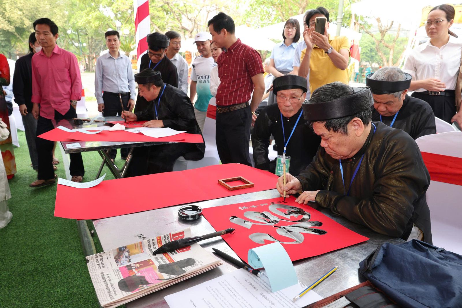 Hội thi năm nay có sự tham gia của 48 thí sinh đến từ 25 xã, phường trong tỉnh. Trong đó, thí sinh cao tuổi nhất là 85, thí sinh nhỏ tuổi nhất là 16. Trong thời gian 30 phút, các thí sinh đã thực hiện 3 bài thi viết: Viết “Đại tự”; một bức “Hoành phi”, một “Câu đối”.