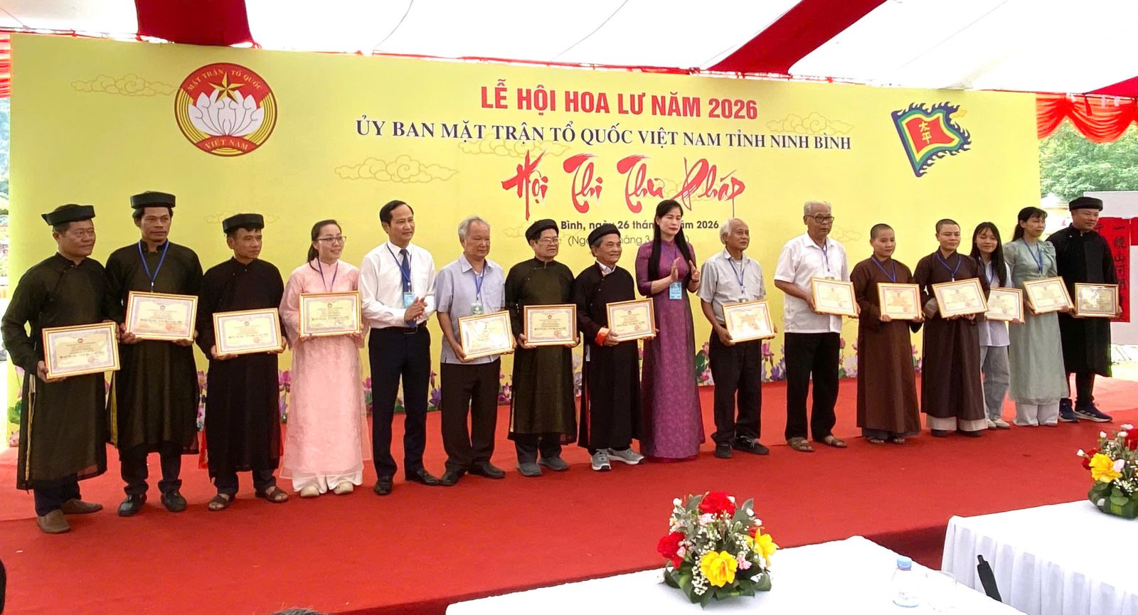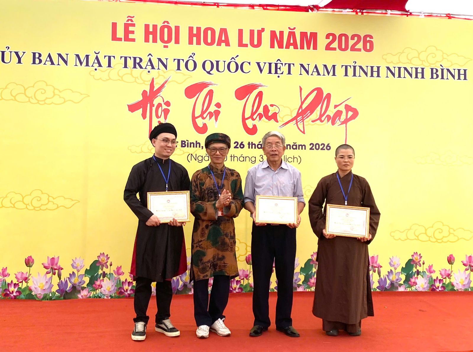Trong khuôn khổ Lễ hội Hoa Lư năm 2026, sáng 26/4 (tức ngày 10/3 âm lịch), Uỷ ban Mặt trận Tổ quốc Việt Nam tỉnh đã tổ chức Hội thi thư pháp.