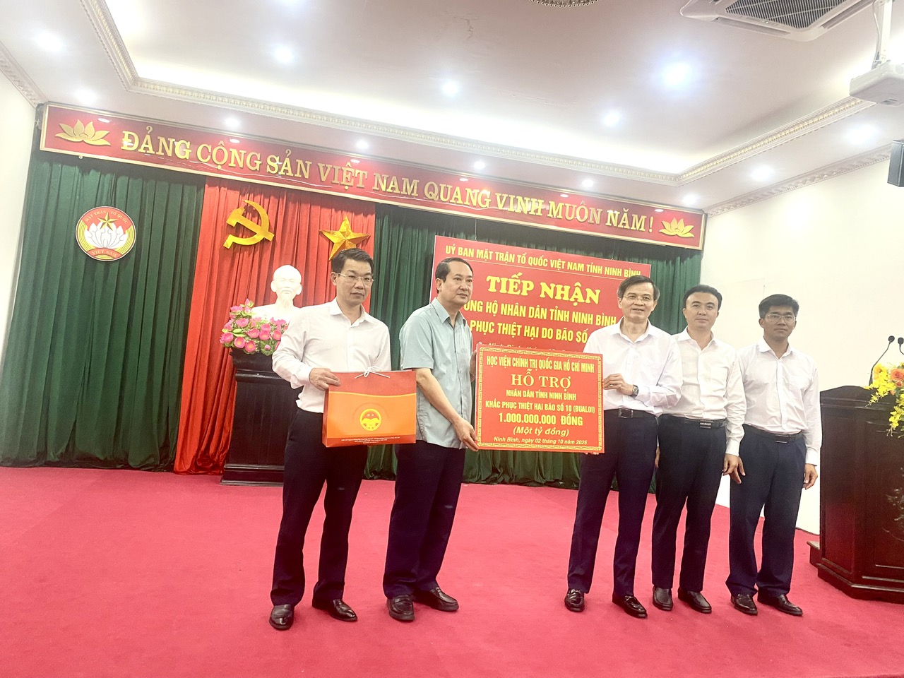 Học viện Chính trị quốc gia Hồ Chí Minh trao tặng hỗ trợ nhân dân Ninh Bình khắc phục thiệt hại do cơn bão số 10