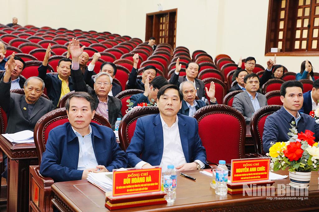 Các đại biểu biểu quyết thống nhất danh sách sơ bộ người được giới thiệu ứng cử đại biểu HĐND tỉnh Ninh Bình khóa XVI, nhiệm kỳ 2026-2031.