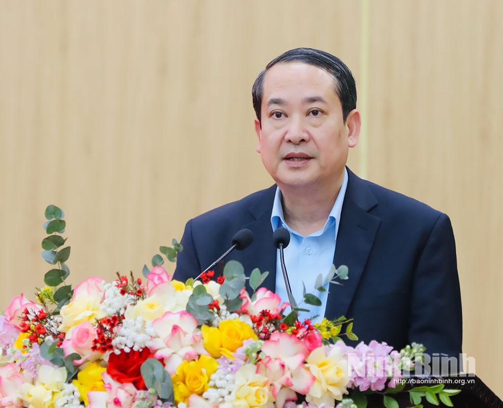 Các đồng chí: Mai Văn Tuất, Phó Bí thư Tỉnh ủy, Chủ tịch Ủy ban MTTQ Việt Nam tỉnh, Phó Trưởng Ban Chỉ đạo Cuộc bầu cử đại biểu Quốc hội khóa XVI và đại biểu HĐND các cấp tỉnh Ninh Bình, nhiệm kỳ 2026-2031; Nguyễn Hoàng Hà, Ủy viên Ban Thường vụ Tỉnh ủy, Phó Chủ tịch Thường trực Ủy ban MTTQ tỉnh, Phó Chủ tịch Ủy ban Bầu cử tỉnh chủ trì hội nghị.