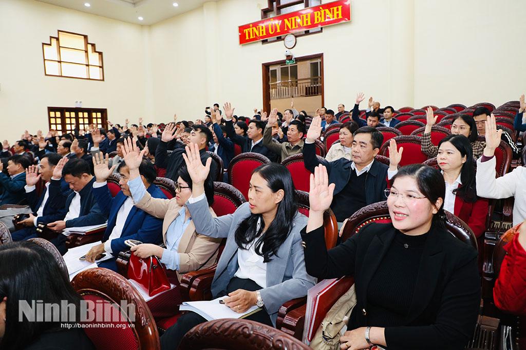 Các đại biểu biểu quyết nhất trí thông qua danh sách sơ bộ người được giới thiệu ứng cử ĐBQH khóa XVI, nhiệm kỳ 2026-2031 đang cư trú và làm việc trên địa bàn tỉnh Ninh Bình.