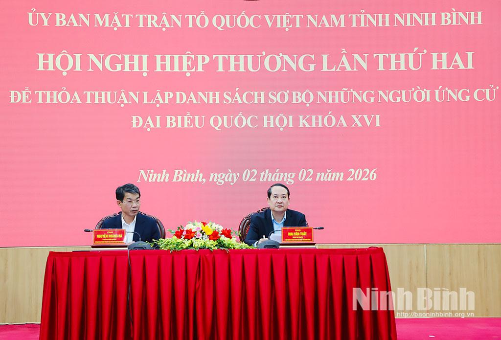 Với tinh thần dân chủ, trách nhiệm, các đại biểu đã bày tỏ sự đồng tình thống nhất cao với dự thảo tờ trình của Ban Thường trực Ủy ban MTTQ tỉnh trình tại hội nghị; đồng thời 100% biểu quyết thống nhất lập danh sách sơ bộ người được giới thiệu ứng cử ĐBQH khóa XVI, nhiệm kỳ 2026-2031 đang cư trú và làm việc trên địa bàn tỉnh Ninh Bình. Biên bản hội nghị hiệp thương lần thứ hai được thông qua ngay tại hội nghị.