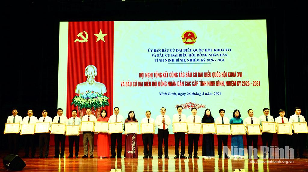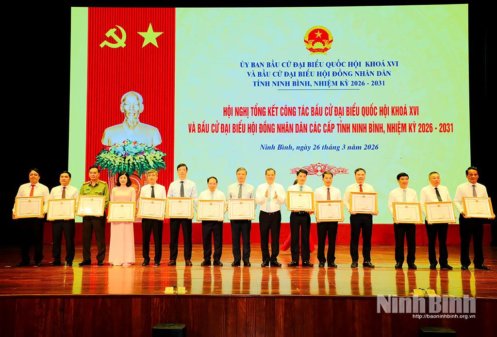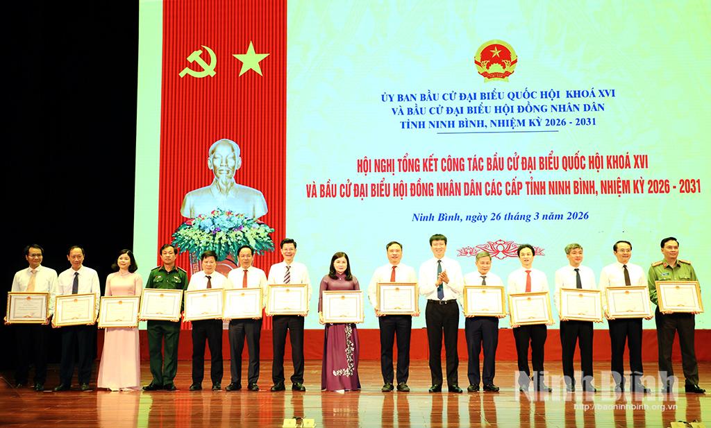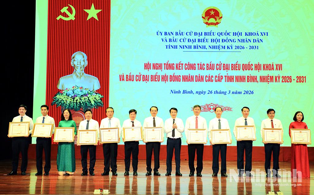 Nhân dịp này, 256 tập thể và 303 cá nhân đã có thành tích xuất sắc trong công tác tổ chức bầu cử đại biểu Quốc hội khóa XVI và đại biểu HĐND các cấp, nhiệm kỳ 2026 - 2031 đã được Chủ tịch UBND tỉnh tặng Bằng khen.