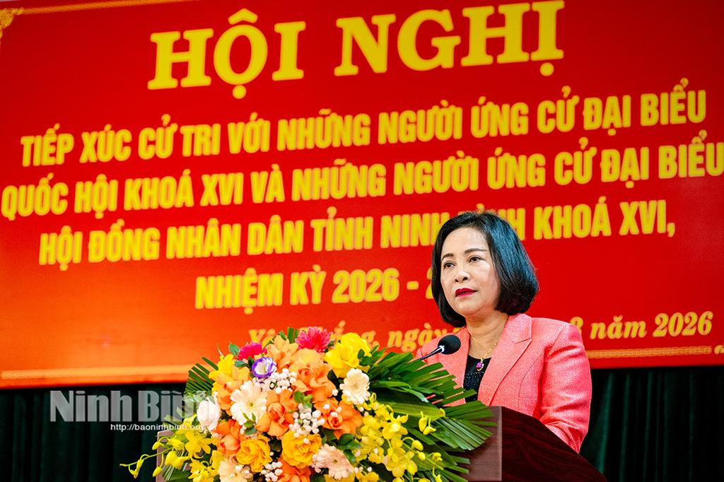 Phó Chủ tịch Quốc hội Nguyễn Thị Thanh và các ứng cử viên đại biểu Quốc hội, đại biểu HĐND tỉnh tiếp xúc cử tri phường Yên Thắng
