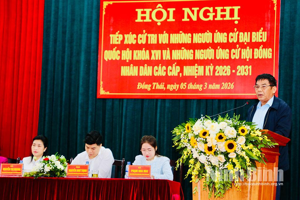 Sáng 5/3, Ban Thường trực Ủy ban MTTQ Việt Nam xã Đồng Thái phối hợp tổ chức hội nghị tiếp xúc cử tri với những người ứng cử đại biểu Quốc hội (ĐBQH) khóa XVI tại Đơn vị bầu cử số 4 và những người ứng cử đại biểu HĐND tỉnh khóa XVI, nhiệm kỳ 2026-2031 tại Đơn vị bầu cử số 9.