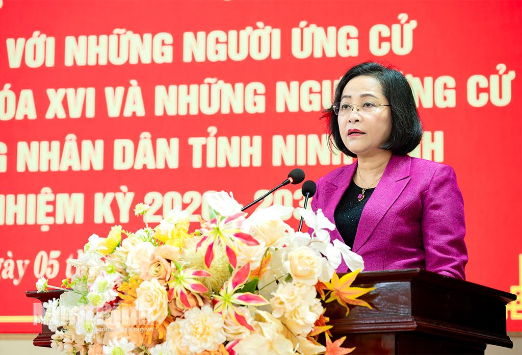 Phó Chủ tịch Quốc hội Nguyễn Thị Thanh cũng nhấn mạnh việc tăng cường nắm bắt thực tiễn ở cơ sở, phát huy vai trò cầu nối giữa địa phương với tỉnh và Trung ương, góp phần cùng tỉnh Ninh Bình thực hiện thắng lợi các mục tiêu phát triển kinh tế - xã hội, nâng cao đời sống vật chất, tinh thần cho Nhân dân.