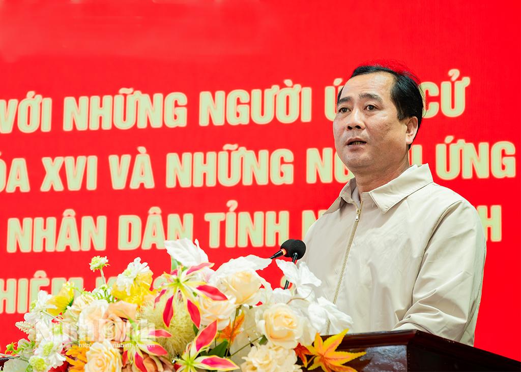 Các ứng cử viên cam kết nếu trúng cử sẽ tích cực tham mưu hoàn thiện và giám sát việc tổ chức thực hiện hệ thống chính sách, pháp luật về phát triển bền vững kinh tế, văn hóa, xã hội. Trong đó tập trung vào các lĩnh vực như: đất đai, tài nguyên, môi trường; đầu tư công; cải cách hành chính; phòng, chống tham nhũng, lãng phí, tiêu cực; kịp thời kiến nghị xử lý những bất cập phát sinh trong thực tiễn, bảo đảm quyền và lợi ích hợp pháp, chính đáng của cử tri và Nhân dân. Phối hợp chỉ đạo việc đổi mới và nâng cao hiệu quả hoạt động của HĐND tỉnh để HĐND tỉnh thực sự là cơ quan quyền lực Nhà nước ở địa phương. Quan tâm tham mưu chỉ đạo xây dựng cơ sở hạ tầng giao thông nông thôn, đô thị; xây dựng nhà ở xã hội; phát triển văn hóa, y tế, giáo dục, bảo vệ môi trường, đảm bảo vệ sinh an toàn thực phẩm, phát triển du lịch, giải quyết việc làm, đảm bảo an sinh xã hội. Gắn bó, đồng hành cùng cấp ủy, chính quyền, hệ thống chính trị của tỉnh trong thực hiện mục tiêu đến năm 2030 trở thành thành phố trực thuộc Trung ương; chủ động phát huy vai trò kết nối với các cơ quan Trung ương để tạo nguồn lực cho sự phát triển kinh tế - xã hội của tỉnh.