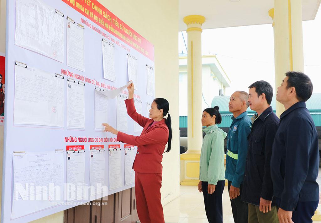 Theo đó, các ứng cử viên đại biểu Quốc hội khóa XVI tại Đơn vị bầu cử số 4 của tỉnh Ninh Bình gồm các ông, bà: Nguyễn Thị Thanh, Ủy viên Trung ương Đảng, Phó Chủ tịch Quốc hội; Mai Văn Tuất, Phó Bí thư Tỉnh ủy, Chủ tịch Ủy ban MTTQ Việt Nam tỉnh; Nguyễn Như Thịnh, Chuyên viên Phòng Công tác HĐND, Văn phòng Đoàn ĐBQH và HĐND tỉnh; Trịnh Thanh Tuyền, Chuyên viên Ban Dân chủ, Giám sát và phản biện xã hội, cơ quan Ủy ban MTTQ Việt Nam tỉnh.