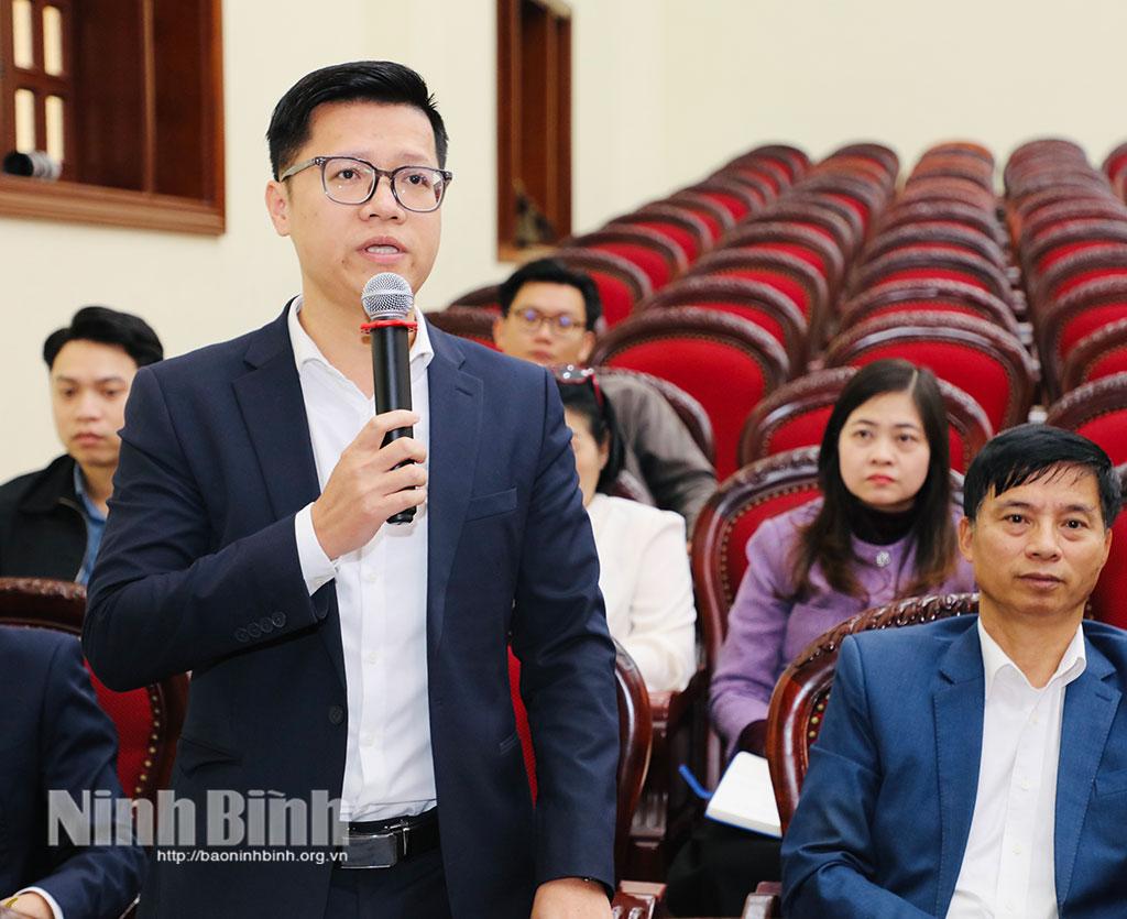 Đồng chí Mai Văn Tuất, Phó Bí thư Tỉnh ủy, Chủ tịch Ủy ban MTTQ Việt Nam tỉnh, Phó Trưởng Ban Chỉ đạo Cuộc bầu cử đại biểu Quốc hội khóa XVI và đại biểu HĐND các cấp tỉnh Ninh Bình, nhiệm kỳ 2026-2031 phát biểu tại hội nghị.