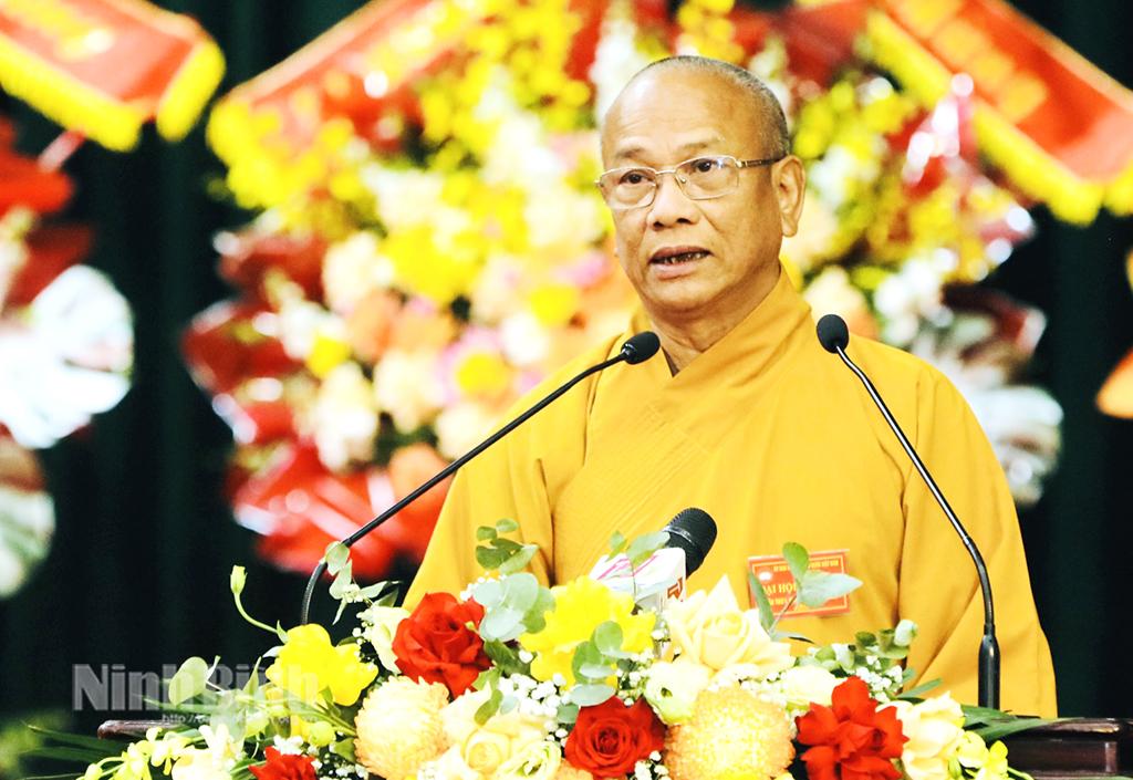 Hòa thượng Thích Quảng Hà, Phó Chủ tịch Hội đồng Trị sự Trung ương Giáo hội Phật giáo Việt Nam, Trưởng Ban Trị sự Giáo hội Phật giáo Việt Nam tỉnh Ninh Bình phát biểu tham luận với nội dung: Phật giáo tỉnh Ninh Bình thực hiện tốt đường hướng “Đạo pháp - Dân tộc - Chủ nghĩa xã hội” để “Hộ quốc an dân” góp sức xây dựng khối đại đoàn kết toàn dân tộc.