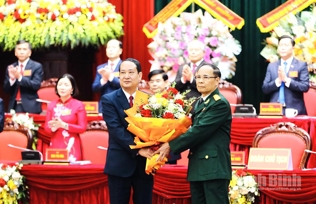 Dự Đại hội, về phía tỉnh Ninh Bình có các đồng chí: Đặng Xuân Phong, Ủy viên Trung ương Đảng, Bí thư Tỉnh ủy, Trưởng Đoàn đại biểu Quốc hội tỉnh; Đinh Thị Lụa, Phó Bí thư Thường trực Tỉnh ủy; Lê Quốc Chỉnh, Phó Bí thư Tỉnh ủy, Chủ tịch HĐND tỉnh; Trần Huy Tuấn, Phó Bí thư Tỉnh ủy, Chủ tịch UBND tỉnh; Mai Văn Tuất, Phó Bí thư Tỉnh ủy, Chủ tịch Ủy ban MTTQ Việt Nam tỉnh.