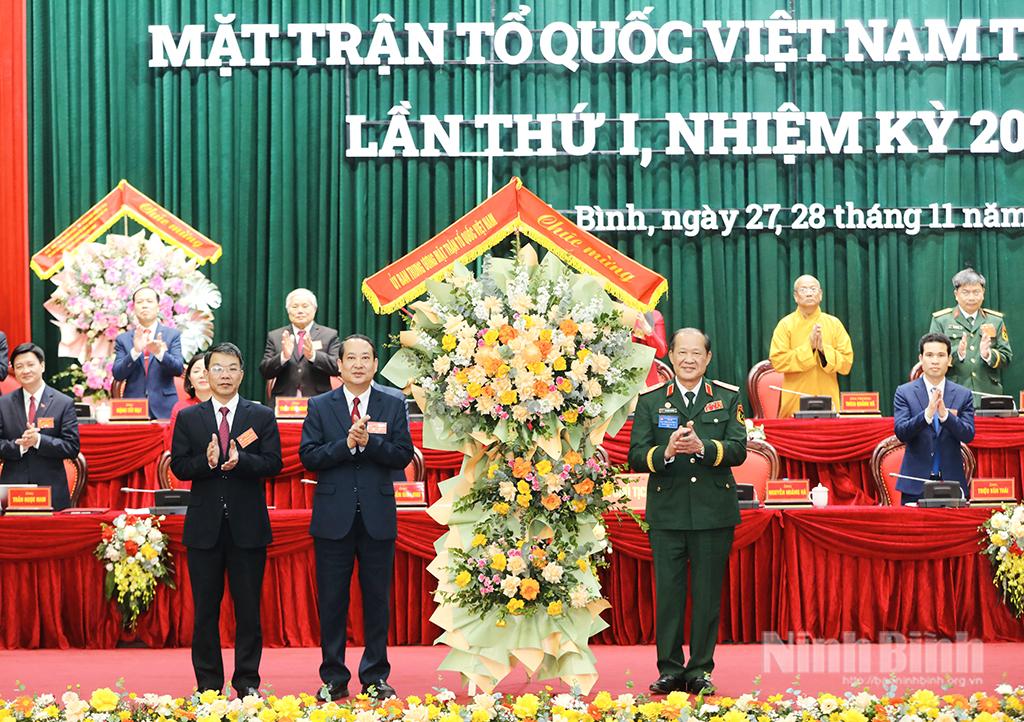 * Nhân dịp này, Thường trực Ủy ban Trung ương MTTQ Việt Nam tặng Đại hội lẵng hoa chúc mừng và bức tranh Bác Hồ - Bác Tôn, hình ảnh cao đẹp tình đoàn kết Nam Bắc một nhà, biểu tượng thiêng liêng của khối đại đoàn kết toàn dân tộc Việt Nam; Ban Chấp hành Đảng bộ tỉnh Ninh Bình tặng Đại hội lẵng hoa tươi thắm cùng bức trướng với nội dung: “Đoàn kết-Dân chủ-Đổi mới-Sáng tạo-Phát triển”thể hiện niềm tin sâu sắc của Đảng bộ, chính quyền đối với Ủy ban Mặt trận Tổ quốc Việt Nam tỉnh trong nhiệm kỳ tới.