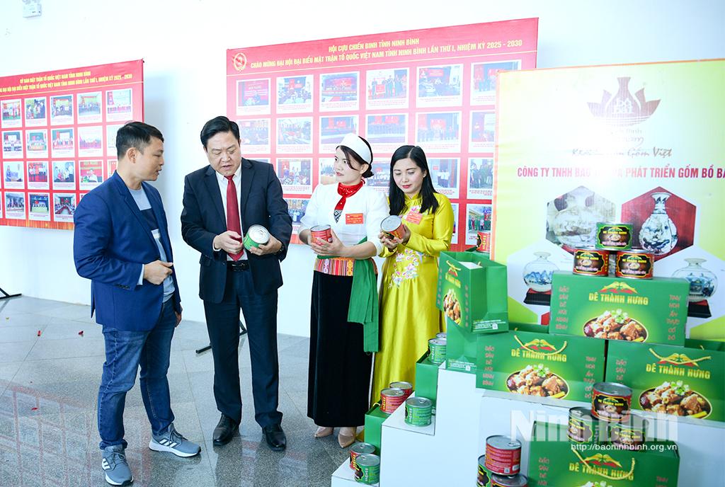 Các đại biểu tham quan các gian hàng trưng bày sản phẩm của các tổ chức thành viên trực thuộc Uỷ ban MTTQ Việt Nam tỉnh.