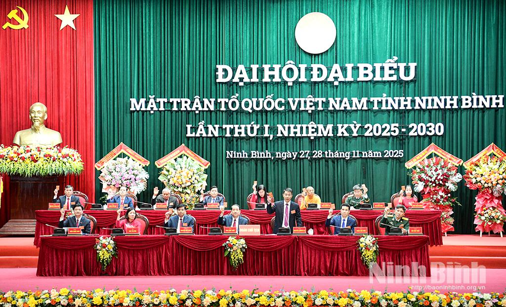Với tinh thần thống nhất rất cao, Đại hội đã thông qua Nghị quyết Đại hội đại biểu MTTQ Việt Nam tỉnh Ninh Bình lần thứ I, nhiệm kỳ 2025-2030 nhằm tiếp tục cụ thể hóa chủ trương, đường lối của Đảng về xây dựng khối đại đoàn kết toàn dân tộc và công tác Mặt trận.