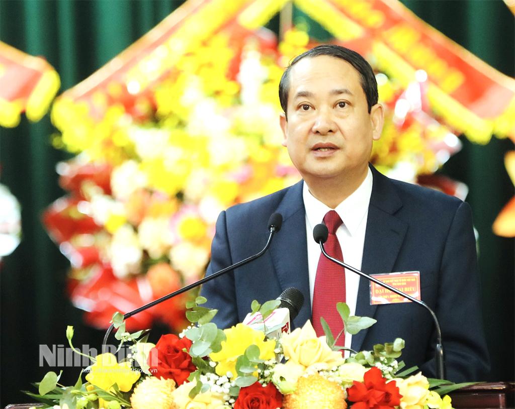 Đồng chí khẳng định: Nhìn lại chặng đường vừa qua, bằng sự nỗ lực, cố gắng, Ninh Bình đã có những bước phát triển toàn diện trên các lĩnh vực: Kinh tế tiếp tục tăng trưởng ổn định, cơ cấu kinh tế chuyển dịch theo hướng tích cực. Các lĩnh vực văn hóa xã hội đạt nhiều kết quả nổi bật, đời sống vật chất và tinh thần của nhân dân từng bước được cải thiện và nâng cao. Công tác xây dựng Đảng và hệ thống chính trị được coi trọng và đạt nhiều kết quả. Quốc phòng, an ninh được giữ vững. Các phong trào hành động của quần chúng nhân dân, nhất là phong trào “Toàn dân đoàn kết xây dựng đời sống văn hóa” tiếp tục được đẩy mạnh, tạo không khí thi đua sôi nổi, củng cố khối đại đoàn kết toàn dân tộc.