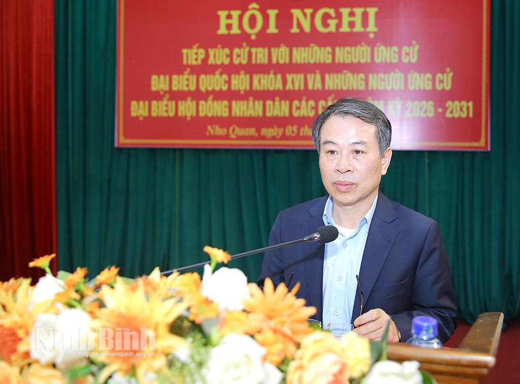 Các ứng cử viên nhấn mạnh, nếu được cử tri tín nhiệm bầu làm đại biểu Quốc hội khóa XVI, đại biểu HĐND tỉnh nhiệm kỳ 2026 - 2031, sẽ kịp thời phản ánh, đề xuất giải quyết những vấn đề liên quan đến phát triển kinh tế - xã hội của địa phương. Trong đó, tập trung vào các công trình, dự án trọng điểm; đẩy mạnh chuyển đổi số, phát triển khoa học - công nghệ; thúc đẩy giáo dục và du lịch theo hướng bền vững. Quan tâm hơn nữa đến công tác bảo đảm an sinh xã hội; giữ vững quốc phòng - an ninh; bảo đảm trật tự an toàn xã hội trên địa bàn. Qua đó, góp phần cùng tỉnh Ninh Bình thực hiện thắng lợi mục tiêu phấn đấu đến năm 2030 trở thành thành phố trực thuộc Trung ương.