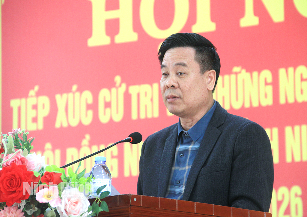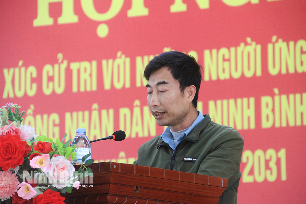 Thay mặt những người ứng cử, ông Nguyễn Hải Dũng, Tỉnh ủy viên, Phó trưởng Đoàn chuyên trách Đoàn đại biểu Quốc hội tỉnh trân trọng tiếp thu và cảm ơn các ý kiến xây dựng tâm huyết của cử tri. Đồng thời cam kết nếu trúng cử sẽ thực hiện nghiêm túc chương trình hành động đã trình bày. Thường xuyên nắm bắt tình hình thực tiễn, lắng nghe ý kiến từ cơ sở, góp phần thiết thực xây dựng Ninh Bình ngày càng phát triển.