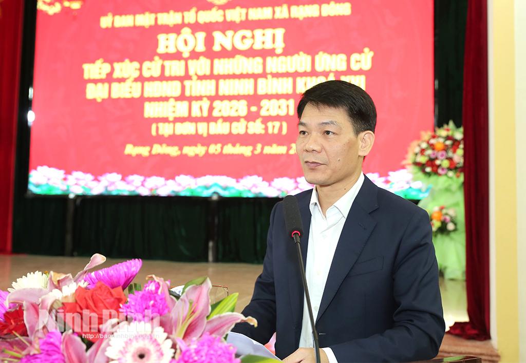 *Chiều 5/3, các ứng cử viên đại biểu HĐND tỉnh Ninh Bình khóa XVI, nhiệm kỳ 2026-2031 thuộc đơn vị bầu cử số 17 đã có buổi tiếp xúc cử tri tại xã Rạng Đông.