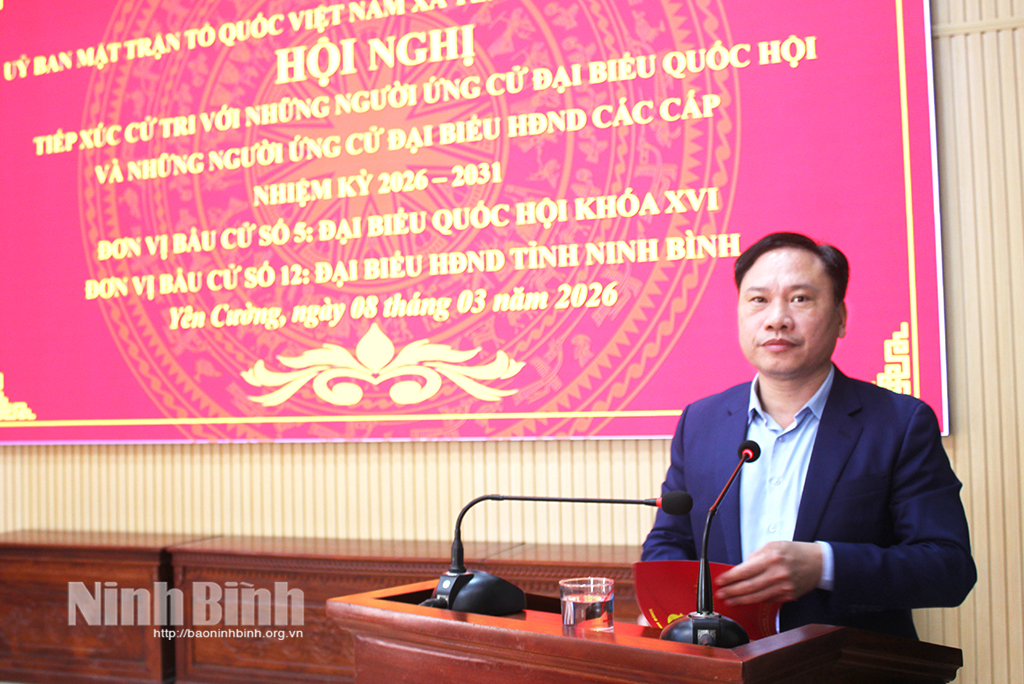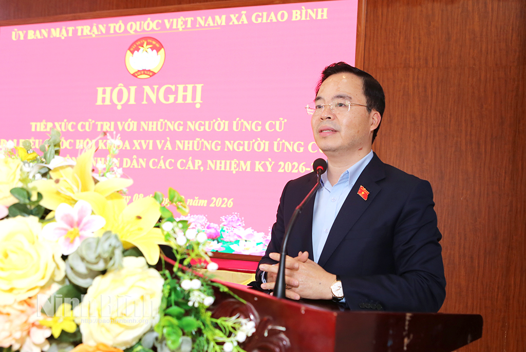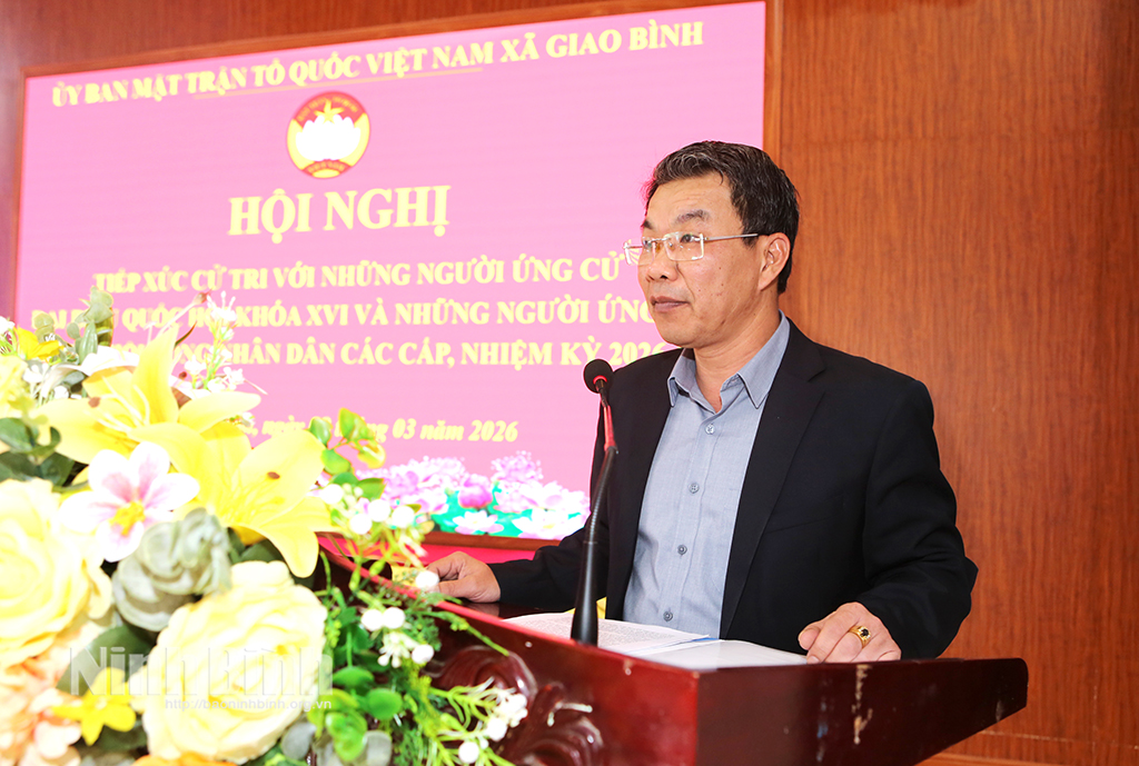 * Chiều 8/3, Ban Thường trực Ủy ban Mặt trận Tổ quốc (MTTQ) Việt Nam xã Giao Bình phối hợp với UBND, Ủy ban Bầu cử xã tổ chức hội nghị tiếp xúc giữa cử tri với những người ứng cử ĐBQH khóa XVI, Đơn vị bầu cử số 8 và ứng cử viên đại biểu HĐND tỉnh Ninh Bình khóa XVI, nhiệm kỳ 2026 - 2031, Đơn vị bầu cử số 22.