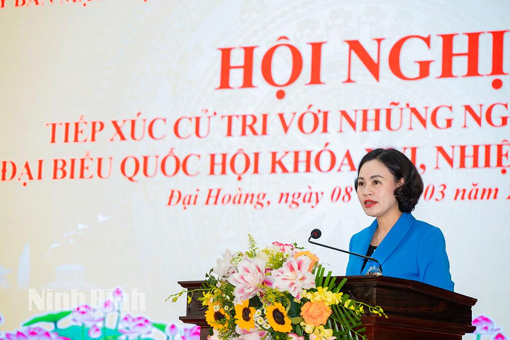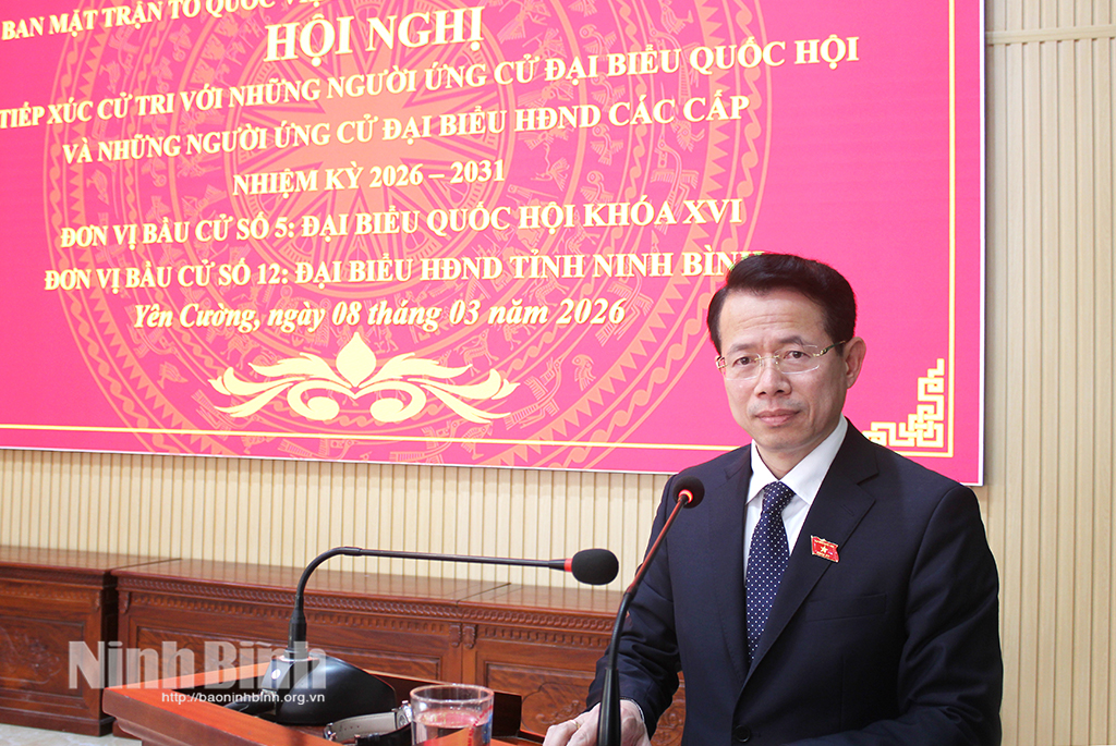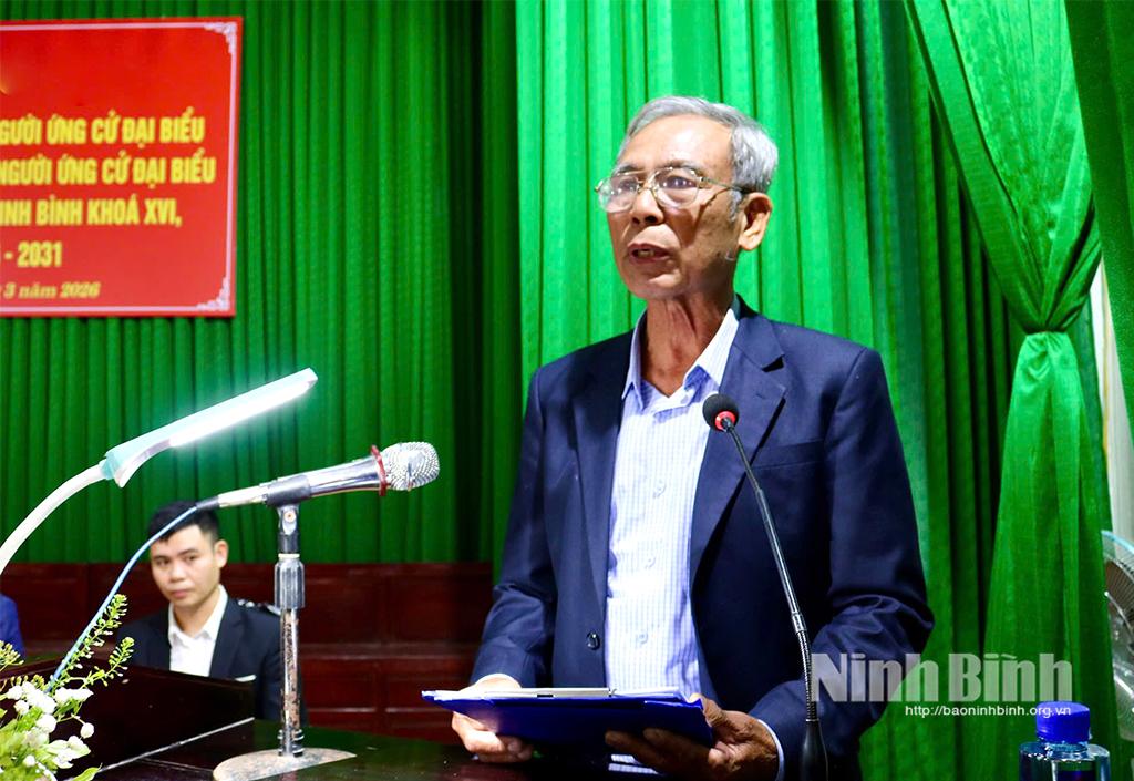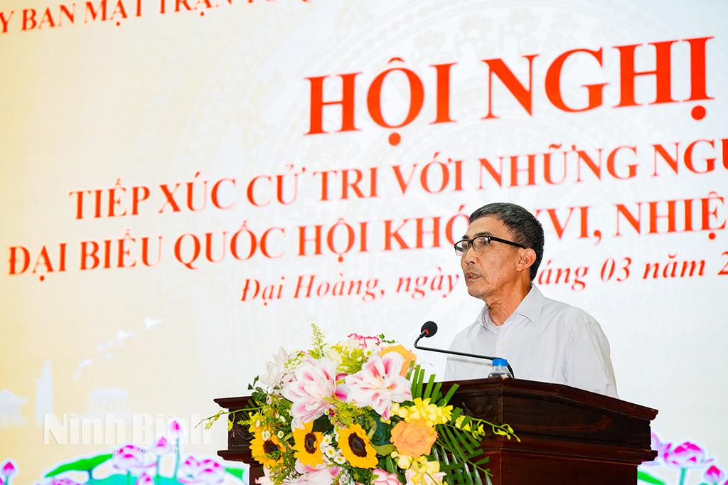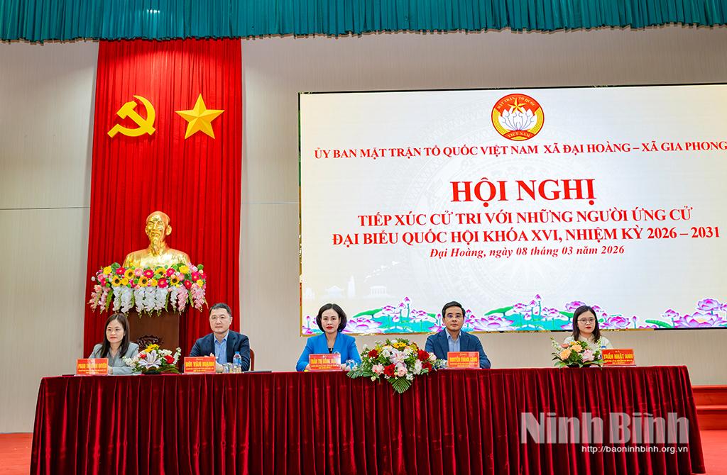Thay mặt các ứng cử viên ĐBQH, HĐND tỉnh, đồng chí Nguyễn Hoàng Hà, Ủy viên Ban Thường vụ Tỉnh ủy, Phó Chủ tịch Thường trực Ủy ban MTTQ tỉnh trân trọng tiếp thu và cảm ơn các ý kiến tâm huyết, trách nhiệm của cử tri. Đồng thời cam kết nếu trúng cử sẽ thực hiện nghiêm túc Chương trình hành động đã trình bày; nỗ lực thực hiện tốt vai trò, trách nhiệm của người đại biểu nhân dân; giữ mối liên hệ chặt chẽ, thường xuyên với cử tri để lắng nghe tâm tư, nguyện vọng chính đáng, phản ánh đầy đủ với Quốc hội, HĐND tỉnh, các cơ quan có liên quan, đồng thời thường xuyên nắm bắt tình hình thực tiễn, lắng nghe ý kiến từ cơ sở, làm tốt vai trò “cầu nối” giữa cử tri, nhân dân với các cơ quan của tỉnh, các địa phương, góp phần thiết thực xây dựng tỉnh Ninh Bình ngày càng giàu đẹp, văn minh, đời sống vật chất, tinh thần của nhân dân ngày càng được nâng cao.