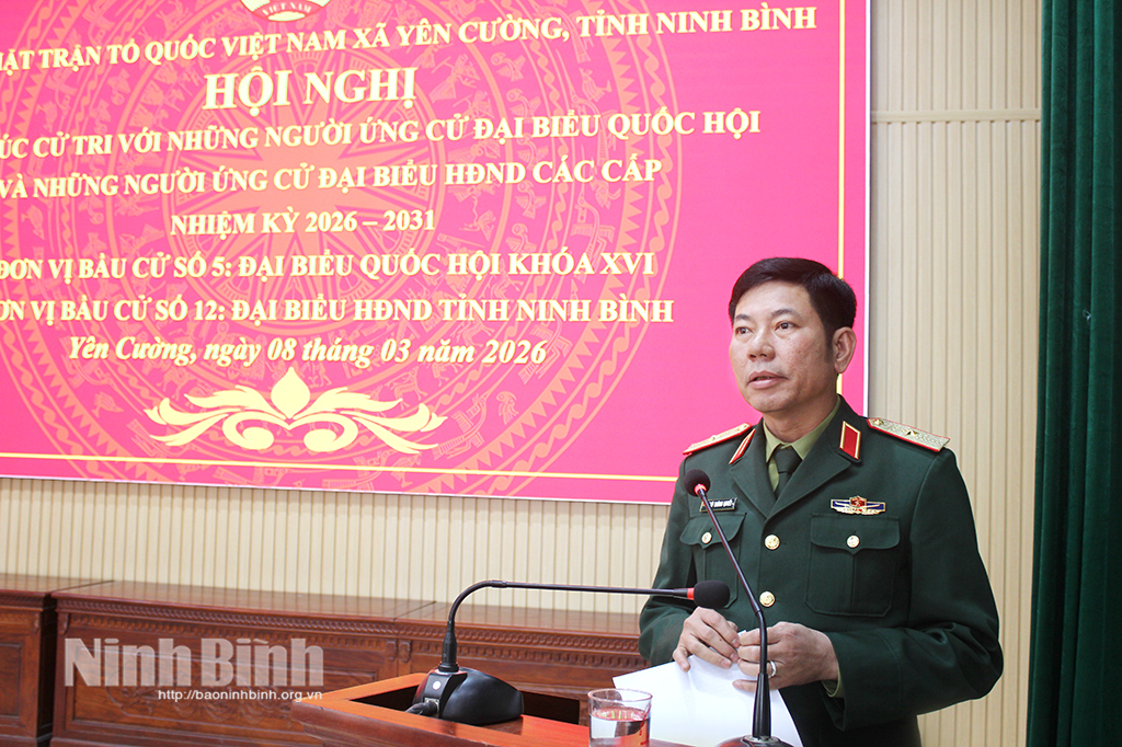 * Chiều 8/3, Ban Thường trực Ủy ban MTTQ Việt Nam xã Yên Cường phối hợp với UBND xã và Ủy ban Bầu cử xã tổ chức hội nghị tiếp xúc giữa cử tri với những người ứng cử BĐQH khóa XVI tại Đơn vị bầu cử số 5 và những người ứng cử đại biểu HĐND tỉnh khóa XVI, nhiệm kỳ 2026-2031 tại Đơn vị bầu cử số 12.