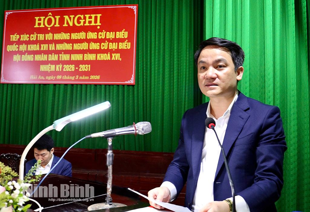 Tại hội nghị, đại diện Ban Thường trực Ủy ban MTTQ Việt Nam xã Hải An giới thiệu tóm tắt tiểu sử các ứng cử viên. Tiếp đó, các ứng cử viên trình bày Chương trình hành động, nêu rõ những nội dung dự kiến triển khai nếu được bầu làm ĐBQH, HĐND tỉnh khóa XVI. Các ý kiến tập trung vào việc tiếp tục rèn luyện phẩm chất, đạo đức, nâng cao trình độ chuyên môn, nghiệp vụ, thực hiện tốt trách nhiệm trước cử tri và nhân dân; theo dõi việc giải quyết các kiến nghị của cử tri, góp phần bảo đảm quyền và lợi ích hợp pháp, chính đáng của nhân dân. Đồng thời nghiên cứu kỹ các dự án luật, nghị quyết, tích cực tham gia thảo luận, đóng góp ý kiến nhằm hoàn thiện hệ thống pháp luật, đáp ứng yêu cầu phát triển của đất nước; quan tâm đề xuất các cơ chế, chính sách thúc đẩy phát triển kinh tế - xã hội địa phương, trong đó chú trọng đến các lĩnh vực: hành chính công, y tế, giáo dục, môi trường, giao thông, thuỷ lợi, văn hoá, chuyển đổi số…