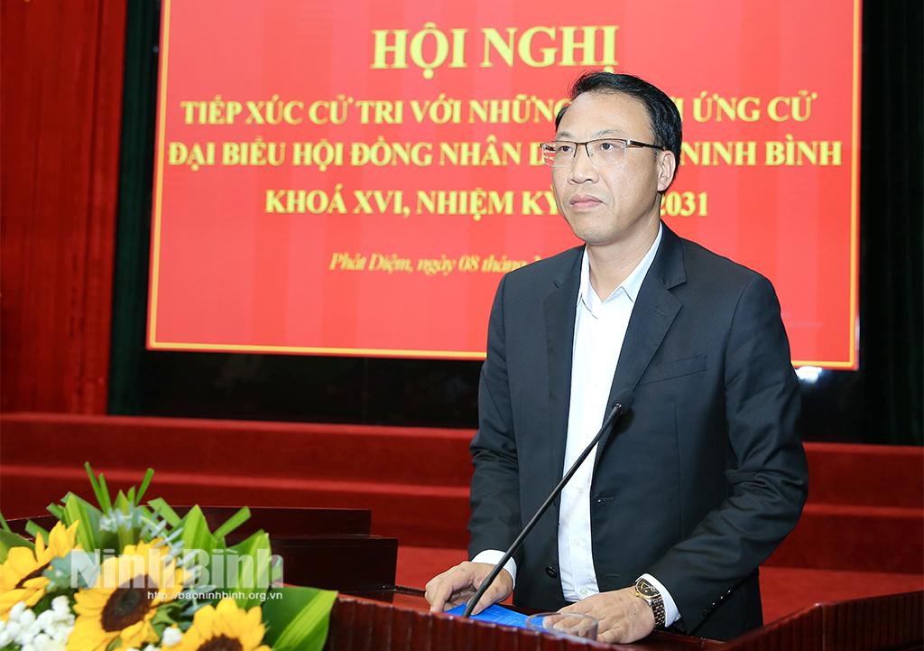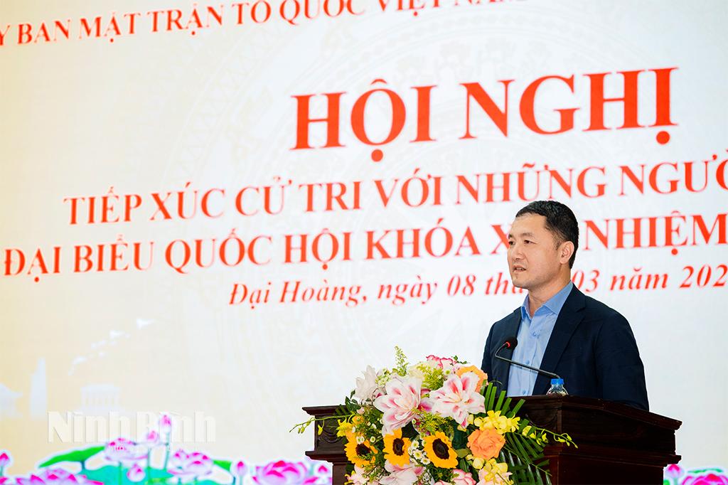 Đồng chí Phạm Hùng Thắng, Tỉnh ủy viên, Phó trưởng Đoàn chuyên trách Đoàn ĐBQH tỉnh đại diện cho người ứng cử ĐBQH và đại biểu HĐND tỉnh trân trọng cảm ơn cử tri đã quan tâm lắng nghe, góp ý chương trình hành động và tiếp thu ý kiến của cử tri. Đồng thời hứa không ngừng nỗ lực, đem hết tâm sức, trí tuệ của mình để thực hiện tốt chức năng, nhiệm vụ người đại biểu nhân dân và chương trình hành động đã đề ra, góp phần xây dựng quê hương Ninh Bình ngày càng phát triển.