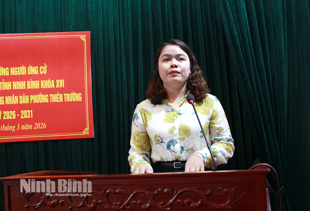 Hội nghị đã nghe đại diện Ủy ban MTTQ Việt Nam phường Thiên Trường giới thiệu tóm tắt tiểu sử, quá trình công tác của các ứng cử viên đại biểu HĐND tỉnh tại Đơn vị bầu cử số 15; nghe các ứng cử viên trình bày chương trình hành động thực hiện chức trách, nhiệm vụ của người đại biểu dân cử nếu trúng cử.