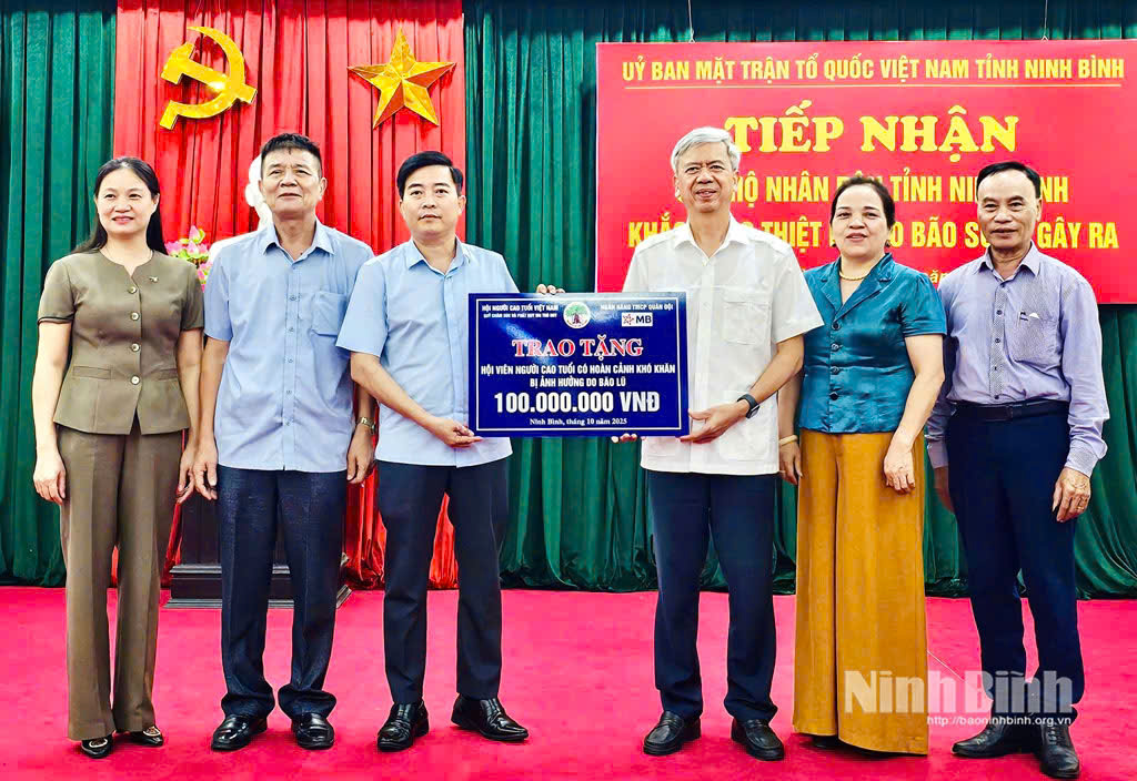 Trung ương Hội Người cao tuổi Việt Nam trao tặng 100 triệu đồng hỗ trợ hội viên người cao tuổi có hoàn cảnh khó khăn bị thiệt hại do bão số 10 tại Ninh Bình.