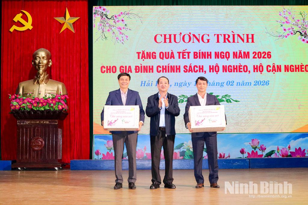 Chiều 11/2, tại Nhà văn hóa xã Hải Hậu, Ủy ban MTTQ Việt Nam tỉnh tổ chức chương trình tặng quà Tết Xuân Bính Ngọ 2026 cho gia đình chính sách, hộ nghèo, hộ cận nghèo trên địa bàn xã Hải Hậu. Dự chương trình có đồng chí Mai Văn Tuất, Phó Bí thư Tỉnh ủy, Chủ tịch Ủy ban MTTQ Việt Nam tỉnh; lãnh đạo Ủy ban MTTQ Việt Nam tỉnh; Văn phòng Tỉnh ủy; lãnh đạo Đảng ủy, HĐND, UBND xã Hải Hậu.